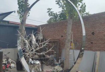 圓環(huán)雕塑相當(dāng)于一個空心的圓,空心圓擁有一個小半徑,整個圓有一個大半徑,整個圓的半徑減去空心圓半徑就是環(huán)寬。生活中的例子有空心鋼管,甜甜圈,指環(huán),游泳圈等,截取圓環(huán)雕塑一部分的叫扇環(huán)。圍繞一個點并以一定長度為距離旋轉(zhuǎn)一周形成的封閉曲線叫做圓。