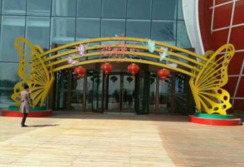 云巖蝴蝶拱門雕塑,鏤空烤漆效果,不銹鋼小區標識雕塑